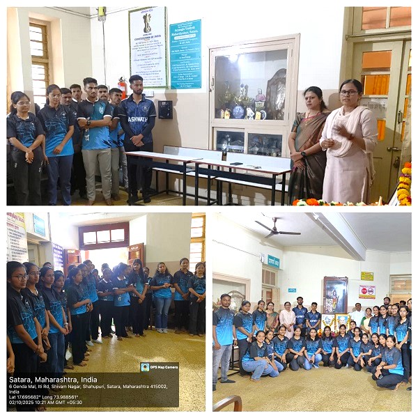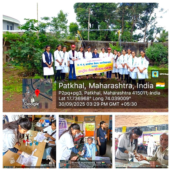 Under the Swachhata Hi Seva Campaign 2025, various activities were conducted in the college by the National Service Scheme (NSS) unit of Seth Chandanmal Mutha Aryangla Vaidyak Mahavidyalaya. This included the Safai Mitra Suraksha Shibir on September 30, 2025, where preventive health check-up camps were organized in eight villages near Satara: Asgaon, Vadhe, Vasole, Vaduth, Nikam Vasti Patkhal, Borakhal, and Arale. With the joint cooperation of National Volunteers and students from Yashda Pharmacy, various health camps were held, in which volunteers checked weight, blood pressure, and blood sugar. Additionally, they went door-to-door to provide information on preventive health measures and raised public awareness. The said activity was successfully completed from 7 AM in the morning to 6 PM in the evening.