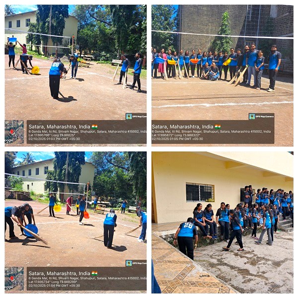 On October 2, 2025, the NSS unit celebrated the birth anniversary of the Father of the Nation, Mahatma Gandhi, and former Prime Minister Shri Lal Bahadur Shastri with enthusiasm. The program began with image worship, lamp lighting, and prayer, followed by addresses to all the present volunteers by NSS Program Officer Dr. Shilpa Revale and College Principal Dr. Patange. The vote of thanks and anchoring were done by NSS volunteer Pratik Jadhav. After this program, cultural events were started in the college on the occasion of the anniversary. Additionally, students and volunteers organized a zero-waste festival and cleanliness drive in the college under the Swachh Harit Utsav.